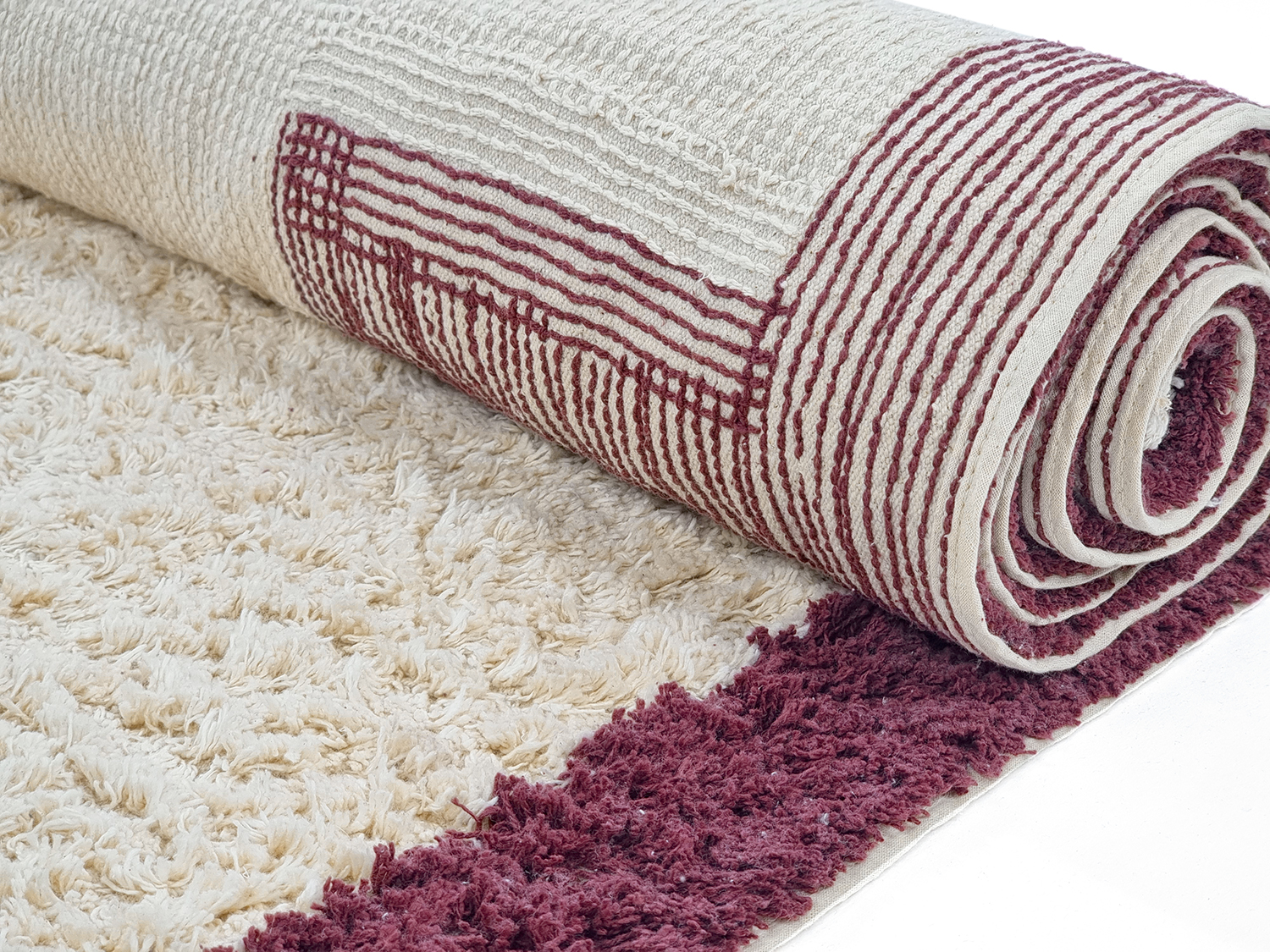 Kerek szőnyeg - Ricco Natural Cotton Shaggy (offwhite/borvörös)