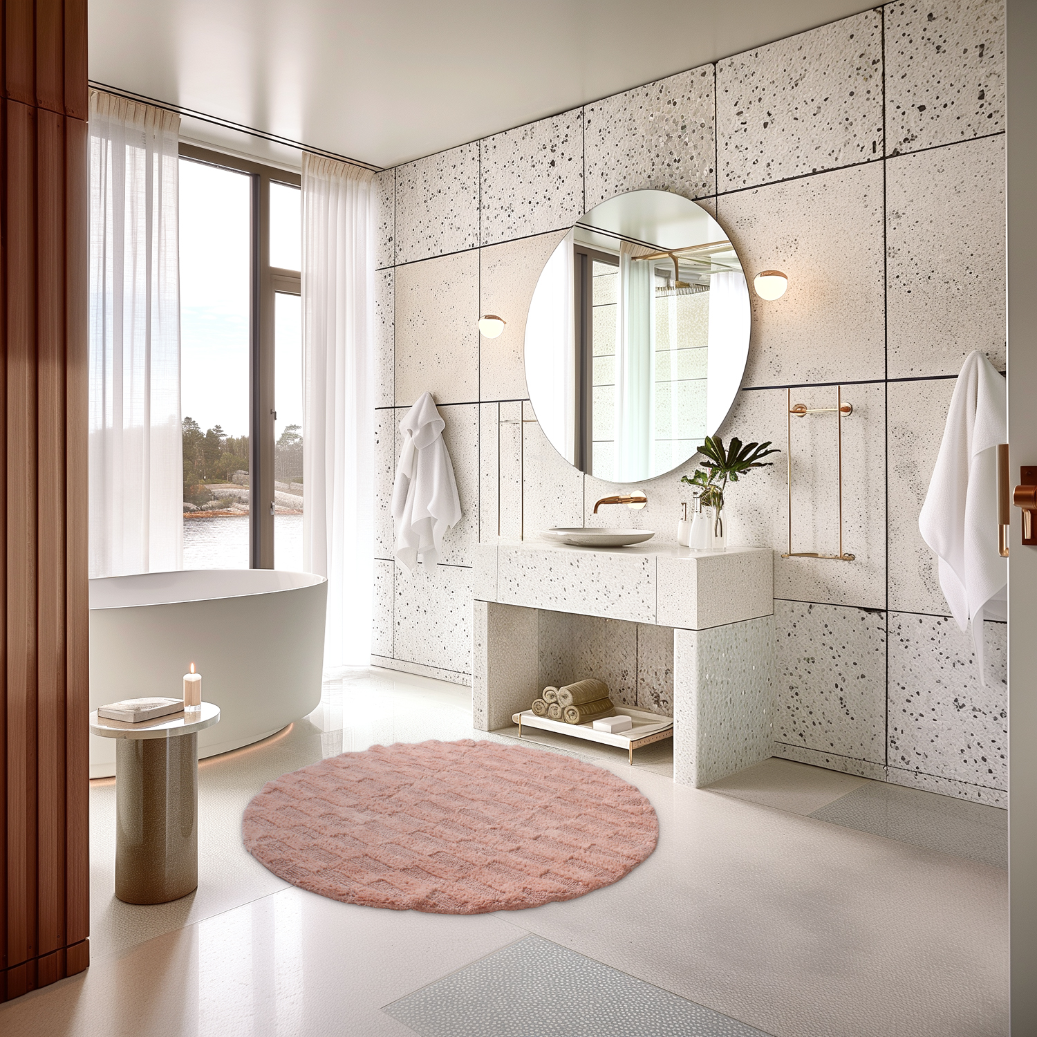 Kerek fürdőszobaszőnyeg - Bevin (rózsaszín)