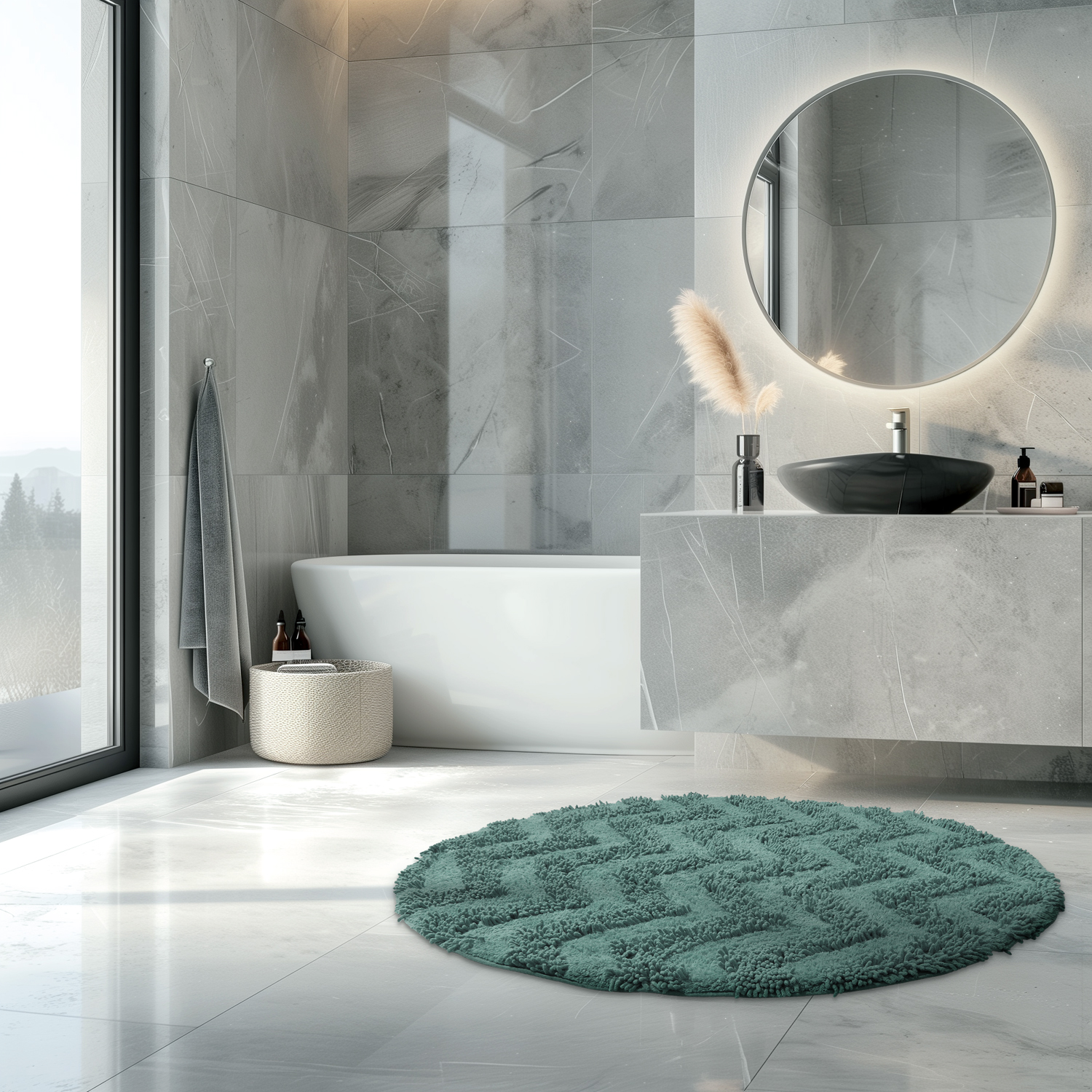 Kerek fürdőszobaszőnyeg - Tressa (sötétzöld)