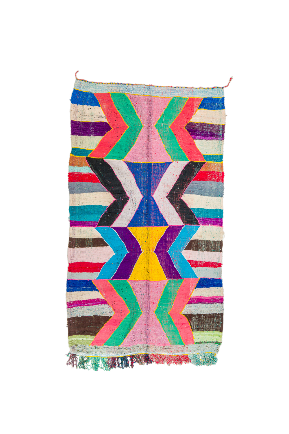 Ismerje meg különleges marokkói boucherouite szőnyegeinket, amelyek kézzel készülnek újrahasznosított textíliákból, többek között pamutból és gyapjúból. Ezek a színes és textúrában gazdag szőnyegek a marokkói hagyományok és a környezettudatos design tökéletes ötvözetét képviselik. Minden egyes boucherouite szőnyeg egyedi és varázslatos, melyek a marokkói kézművesek kreativitását és mesterségbeli tudását tükrözik.