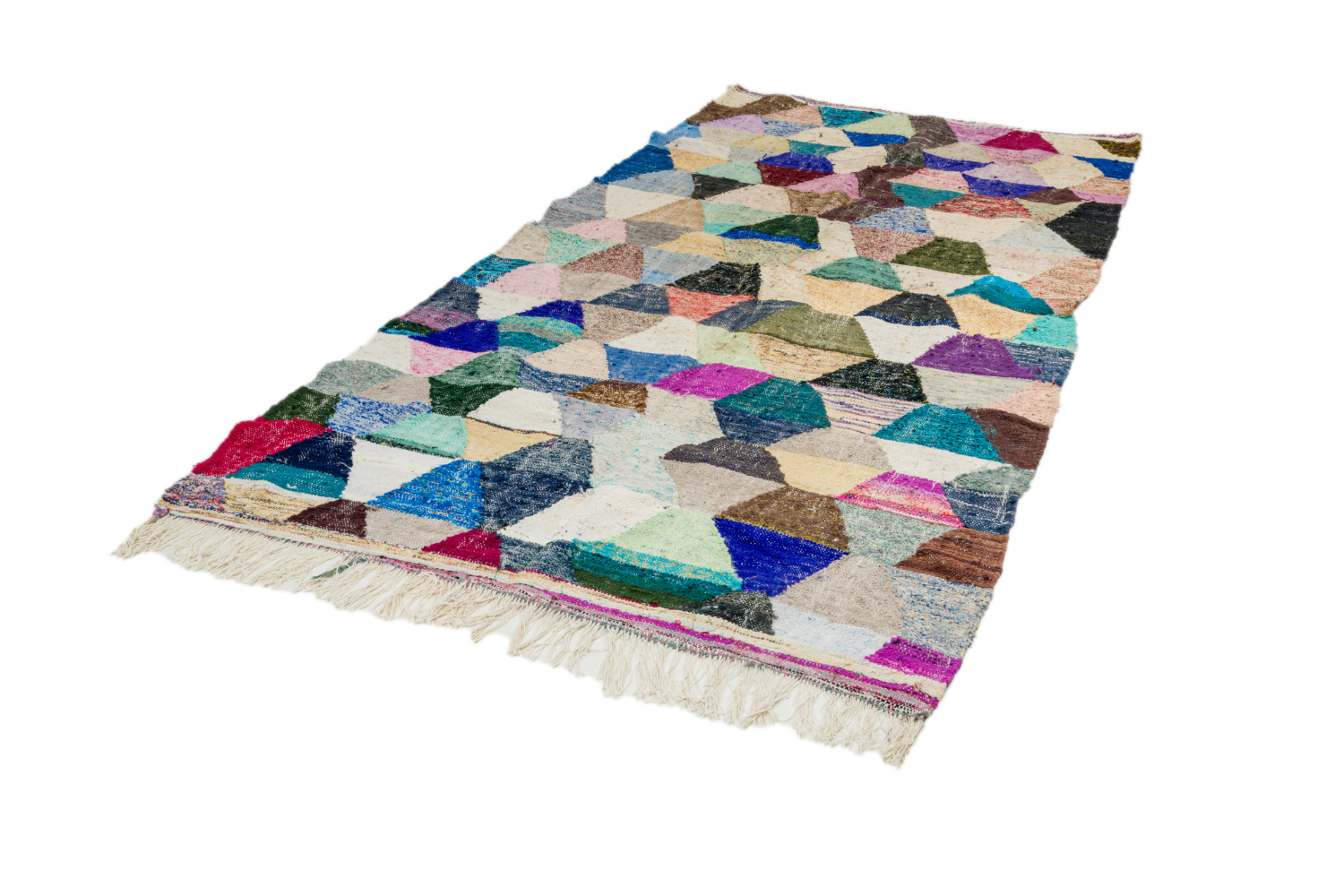 Ismerje meg különleges marokkói boucherouite szőnyegeinket, amelyek kézzel készülnek újrahasznosított textíliákból, többek között pamutból és gyapjúból. Ezek a színes és textúrában gazdag szőnyegek a marokkói hagyományok és a környezettudatos design tökéletes ötvözetét képviselik. Minden egyes boucherouite szőnyeg egyedi és varázslatos, melyek a marokkói kézművesek kreativitását és mesterségbeli tudását tükrözik.