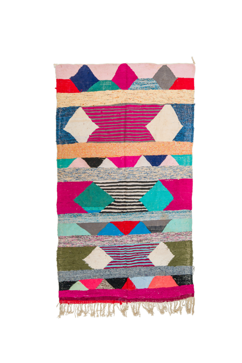 Ismerje meg különleges marokkói boucherouite szőnyegeinket, amelyek kézzel készülnek újrahasznosított textíliákból, többek között pamutból és gyapjúból. Ezek a színes és textúrában gazdag szőnyegek a marokkói hagyományok és a környezettudatos design tökéletes ötvözetét képviselik. Minden egyes boucherouite szőnyeg egyedi és varázslatos, melyek a marokkói kézművesek kreativitását és mesterségbeli tudását tükrözik.